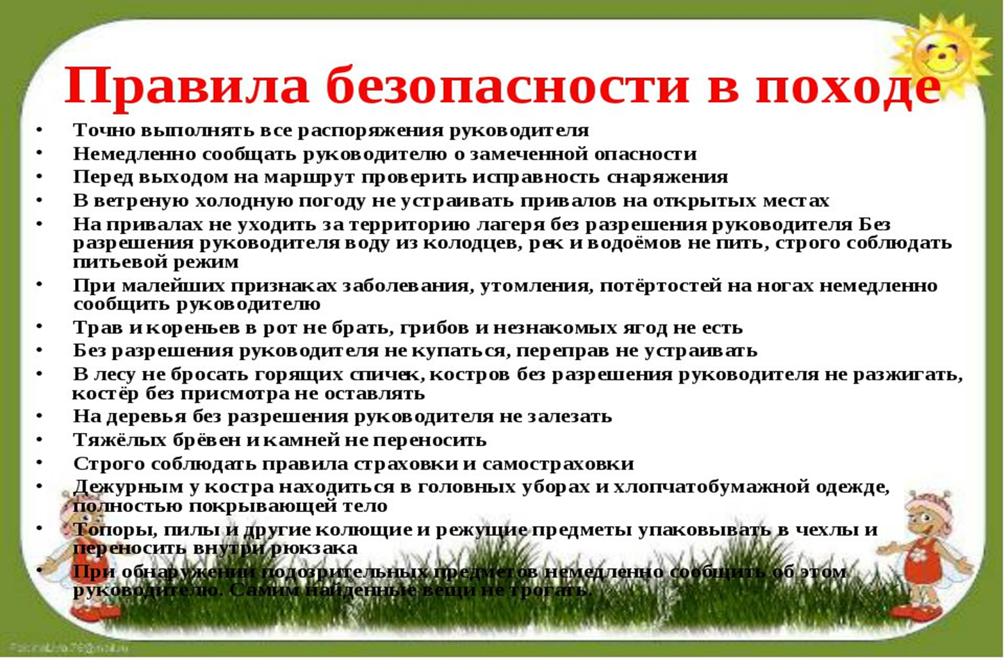 - Методические и практические рекомендации по обеспечению мер безопасности при подготовке и проведении туристических походов и экскурсий со школьниками в оздоровительных лагерях.